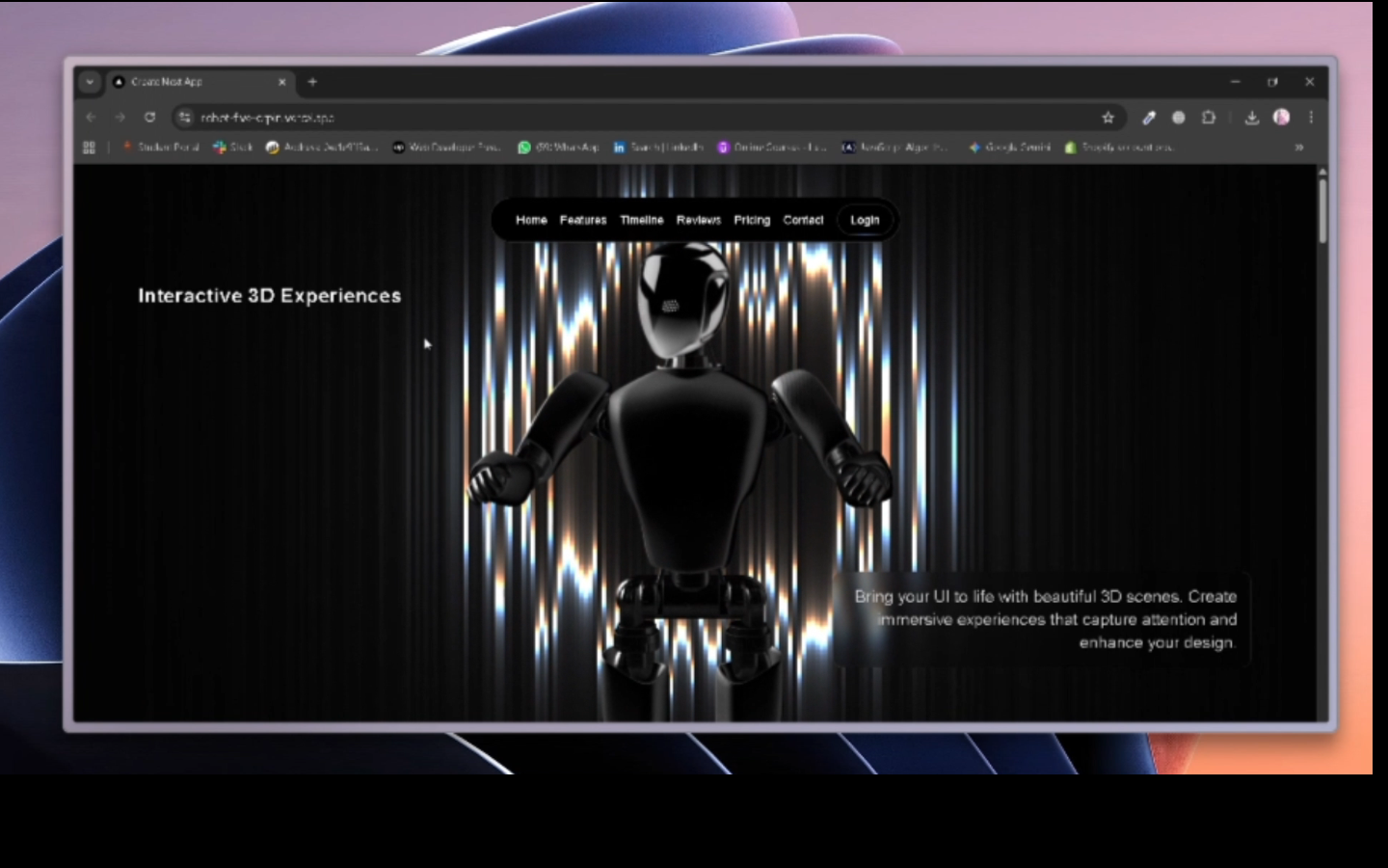 A rebuilt landing page focused on the one thing that matters most: the black robot and the cinematic light beams behind it.